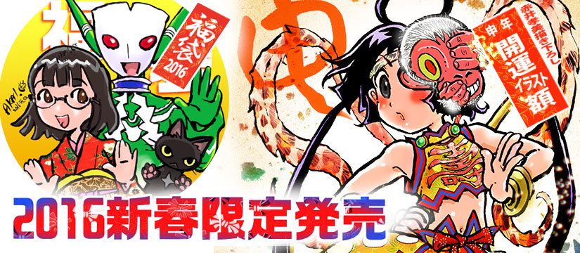米子ガイナックスのショップ「ゼネプロアルファー」では、2016年(平成28年)の新春限定商品として、「福袋2016」と「申年開運イラスト額」を販売しています。ネットショップの他、のリアルショップ「ゼネプロアルファー」(米子市角盤町)と「ガイナックスシアター」(同市末広町)でも販売します。 (12/31修正)